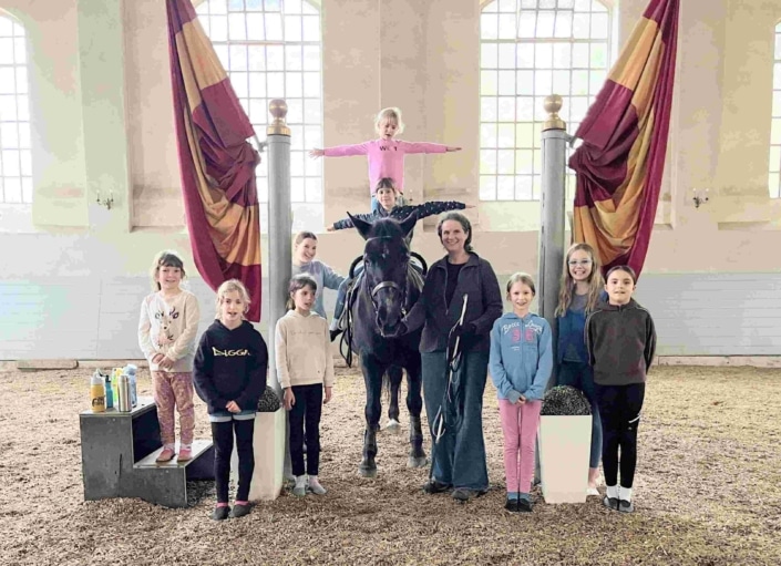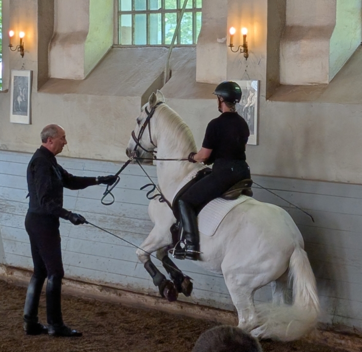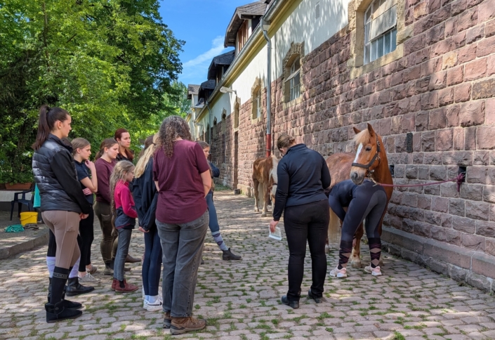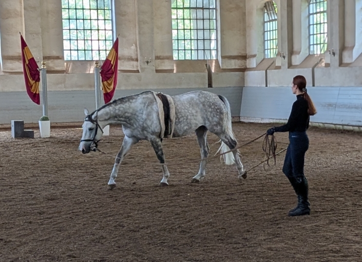 Wir bieten eine vollumfängliche Ausbildung. Für Reiter:innen bedeutet dies insbesondere Gruppen- und Einzelunterricht in klassischer Dressur von den Grundlagen bis zur hohen Schule, Sitzschulung, sowie Doppellonge und langer Zügel. Für Pferdebesitzer:innen stehen Pensionsboxen und Beritt zur Verfügung. Wir unterstützen gerne bei der Pferdeausbildung. Lehrgänge, Intensivtage und Praktika ermöglichen die vertiefte Arbeit an einzelnen Schwerpunkten – ein Angebot, das Menschen aus ganz Deutschland und der Welt regelmäßig zu uns führt. Für die Kleinsten bieten wir Voltigieren als Startpunkt für das Reiten an.